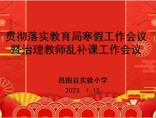 2023年1月15日上午9:00我校召开“贯彻落实教育局寒假工作会议暨治理教师乱补课工作会议”。
